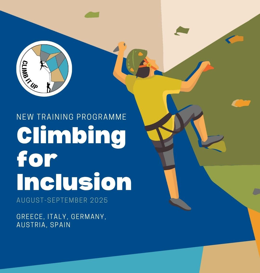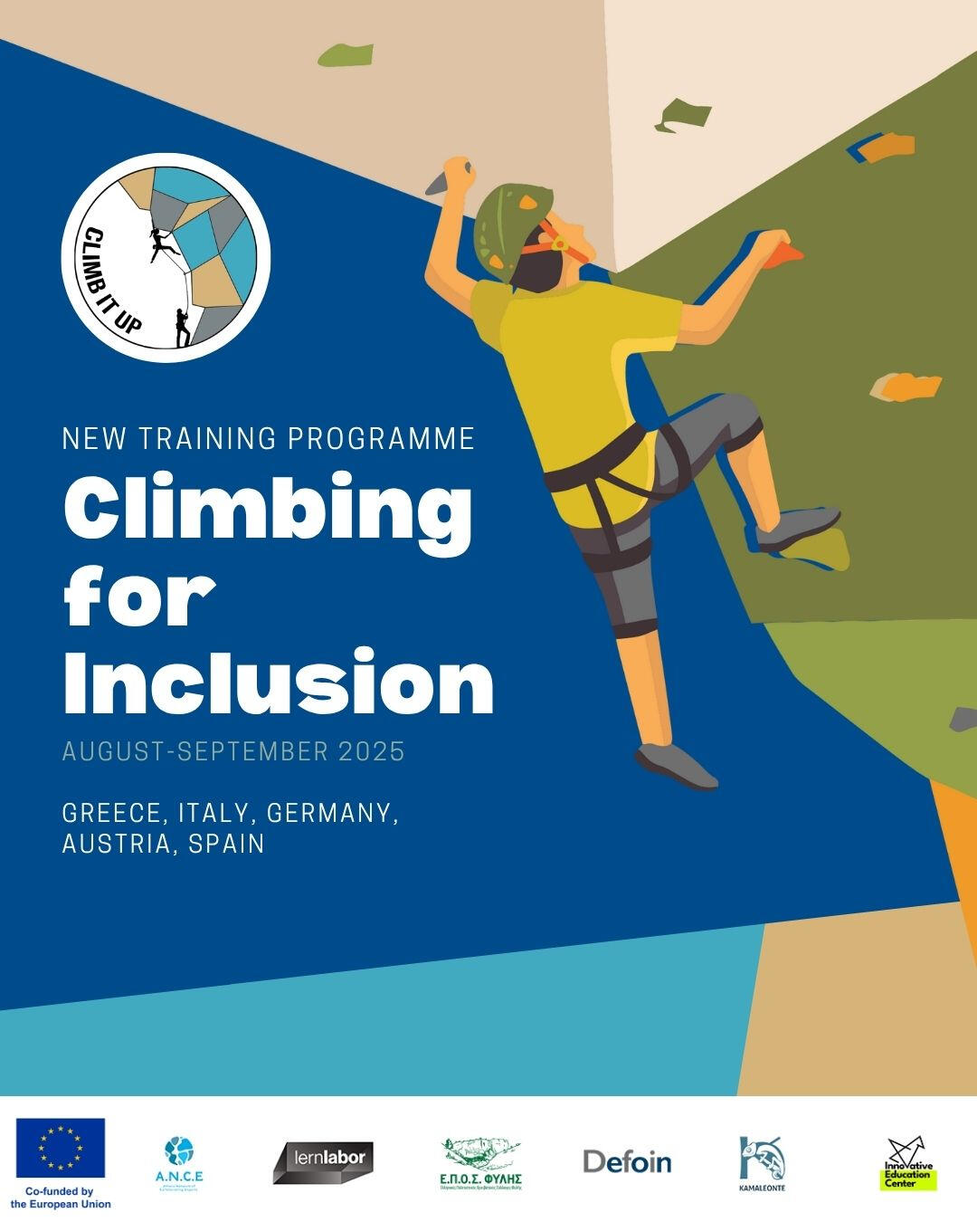 We’re thrilled to announce that as part of the Climb It Up project, we will implement our brand-new Climbing Program for Inclusion in Greece, Italy, Germany, Austria, and Spain! 🇬🇷🇮🇹🇩🇪🇦🇹🇪🇸From August until September, each partner organization will pilot this innovative climbing program with 𝐭𝐡𝐞 𝐟𝐫𝐞𝐞 𝐩𝐚𝐫𝐭𝐢𝐜𝐢𝐩𝐚𝐭𝐢𝐨𝐧 𝐨𝐟 𝟏𝟎 𝐦𝐢𝐠𝐫𝐚𝐧𝐭𝐬, 𝐫𝐞𝐟𝐮𝐠𝐞𝐞𝐬, 𝐨𝐫 𝐦𝐞𝐦𝐛𝐞𝐫𝐬 𝐨𝐟 𝐞𝐭𝐡𝐧𝐢𝐜 𝐦𝐢𝐧𝐨𝐫𝐢𝐭𝐢𝐞𝐬 in their country — bringing together a total of 50 participants across Europe.What to expect: